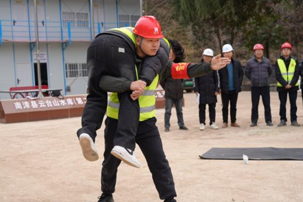 南漳县云台山水库除险加固工程项目举行应急消防演练
