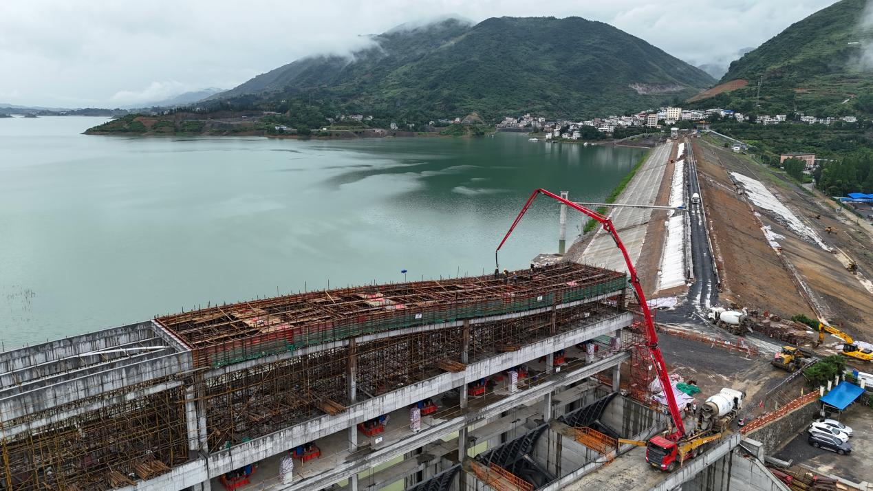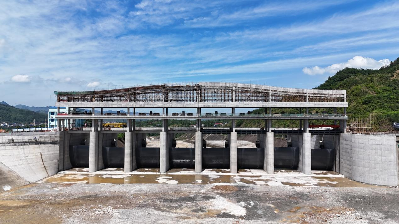 湖北省富水水库溢洪道启闭机房封顶