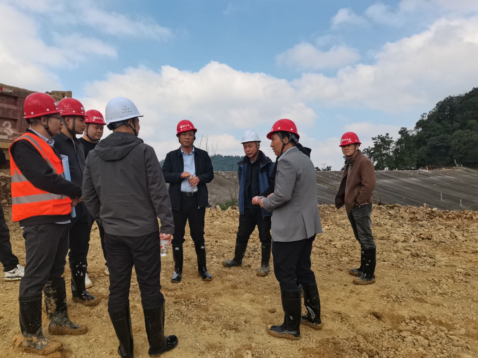 10月22日至26日,赤壁市水利局局长雷国安率队到双石水库项目开展调研指导工作,公司董事长周运奎、总经理袁水斌参与调研,副总经理李继明、生产管理部负责人及项目相关负责人等陪同。